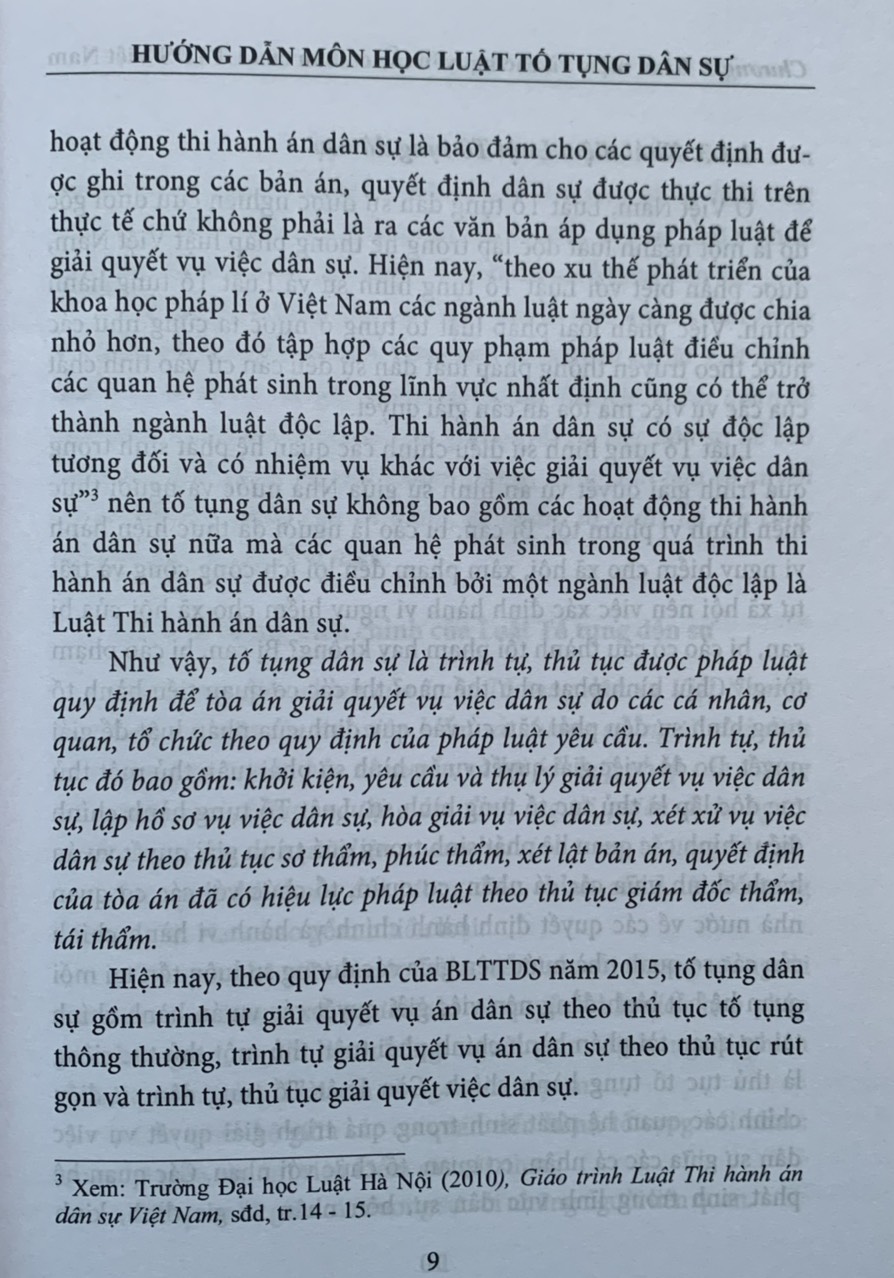 Cuốn sách "Hướng dẫn môn học Luật Tố Tụng dân sự" được biên soạn bởi tập thể tác giả và do PGS.TS. Bùi Thị Huyền, hiện là Trưởng bộ môn luật tố tụng dân sự , giảng viên cao cấp của trường đại học luật Hà Nội làm chủ biên. Cuốn sách cập nhật những quy định mới của bộ luật tố tụng dân sự săm 2015 và các văn bản hướng dẫn thi hành của tòa án nhân dân tối cao.