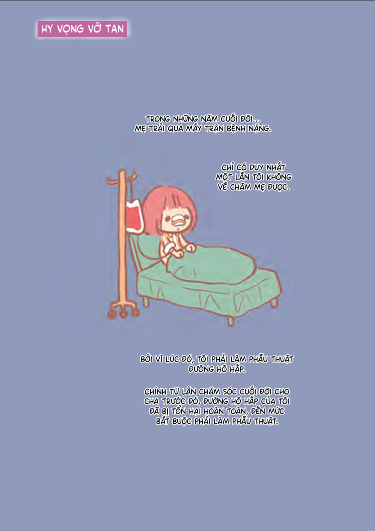 Sau khi cha qua đời, mấy năm sau người mẹ cũng bắt đầu già yếu, nhiều lần ra vào bệnh viện. Miew và chị gái cũng hiểu được mẹ không còn nhiều thời gian. Vì đã trải qua những đau thương và tiếc nuối trong chuỗi ngày cuối cùng của cha, Miew và chị gái đã có sự chuẩn bị, đã biết cách chăm sóc mẹ và chăm sóc bản thân. Vẫn còn đó nỗi buồn của sự chia ly, nhưng từng trang sách của tập 2 đều thấm đẫm yêu thương, hoài niệm, ấm áp và che chở.