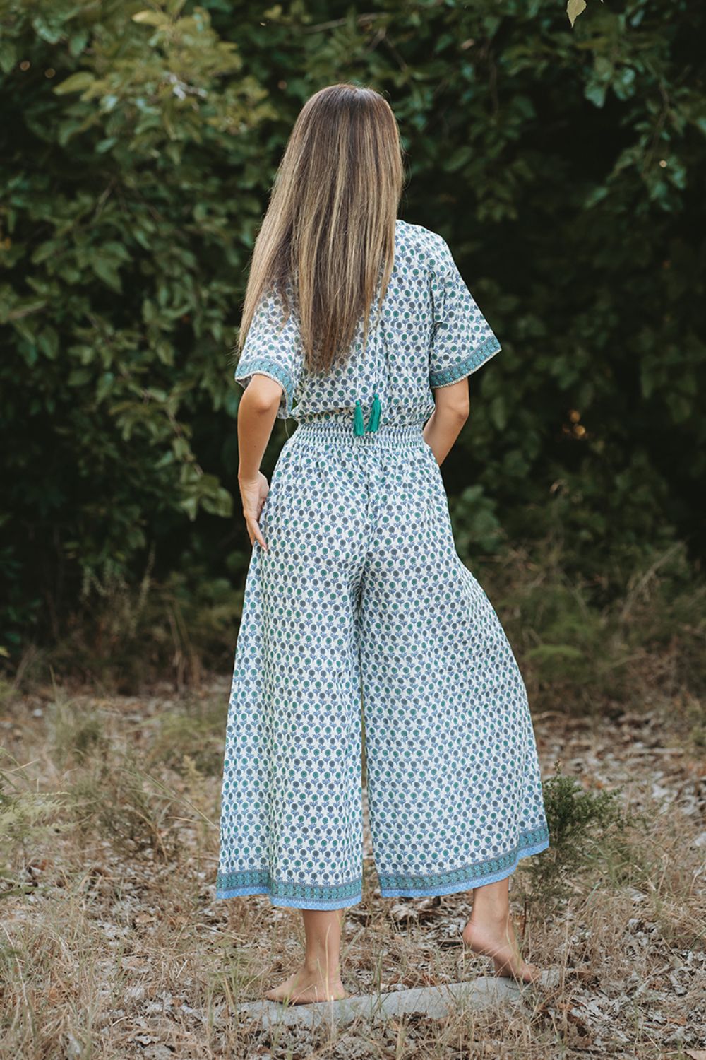 Jumpsuit Cổ V Cotton Cao Cấp Luna Llena, chất cotton silk mềm mượt cao cấp. Eo thun co giãn. Dài 140cm (40x140) Phù hợp đi biển, dạo phố, công sở, hoặc dự tiệc. Hướng dẫn
