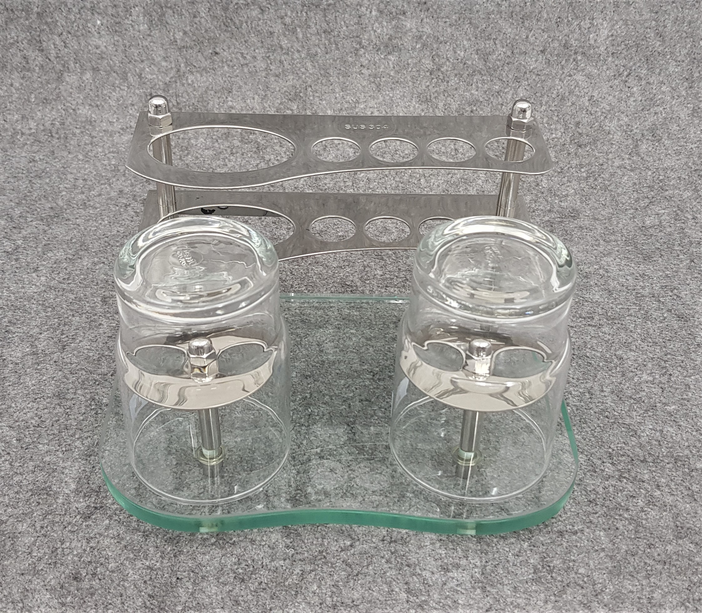 Bộ sản phẩm bao gồm kệ và bộ 2 ly thủy tinh