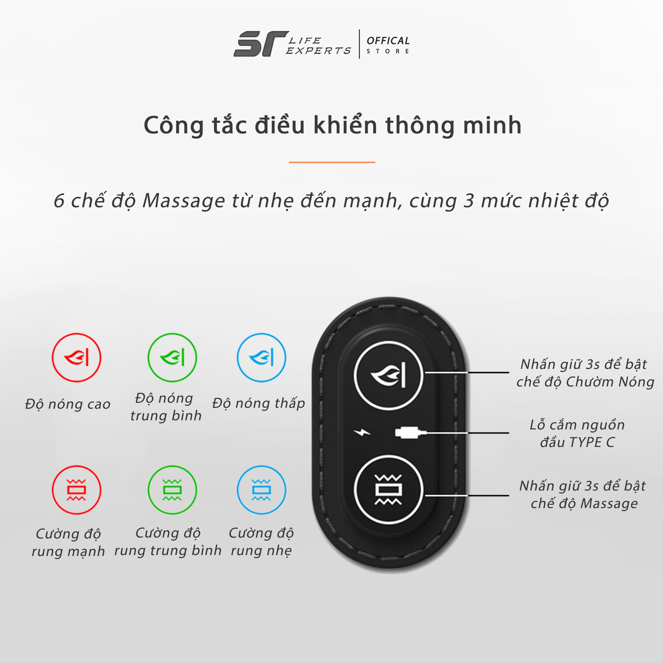Kê đầu đổi vị trí: 6 chế độ massage & 3 mức nhiệt độ.