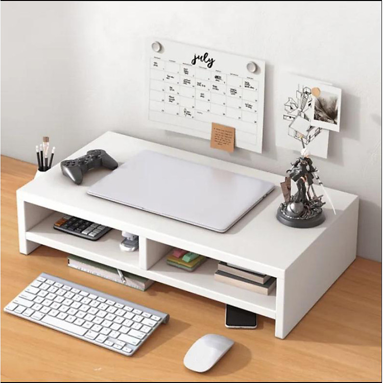 - Kệ để màn hình với thiết kế đơn giản, hiện đại, giúp nâng màn hình máy tính đến độ cao phù hợp với tầm mắt. Ngăn bên dưới có thể cất gọn bàn phím và chuột khi không sử dụng, giúp bàn làm việc trở nên gọn gàng và rộng rãi hơn.