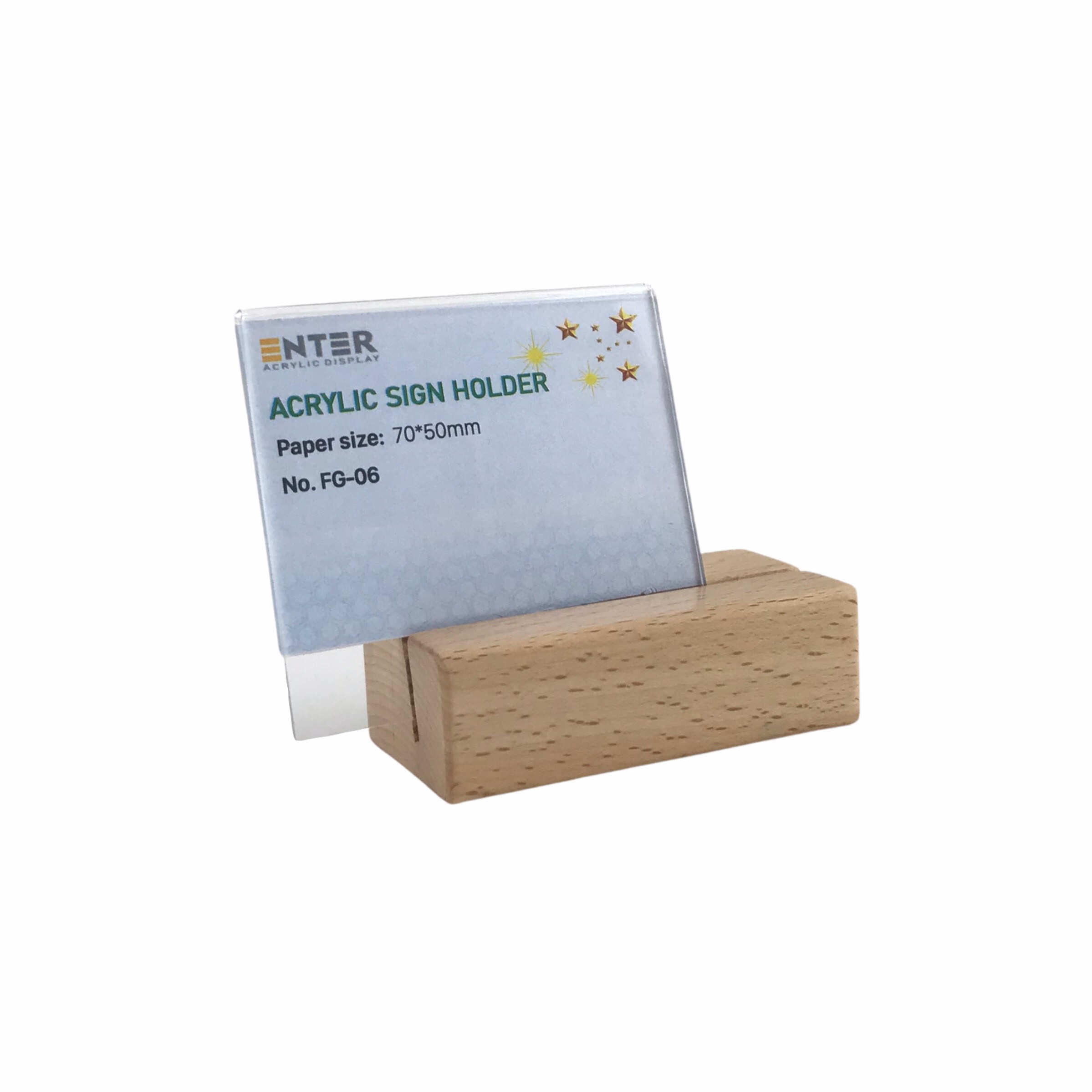 Mô tả sản phẩm Mã barcode Quy cách Đơn vị tính Đóng gói Thương hiệu Xuất xứ FG-01 Thân mica 90 x 120mm Đế gỗ 90 x 40 x 25mm Cái 1 Enter Việt Nam FG-02 Thân mica 70 x 90mm Đế gỗ 70 x 40 x 25mm Cái 1 Enter Việt Nam FG-03 Thân mica 50 x 70mm Đế gỗ 50 x 40 x 25mm Cái 1 Enter Việt Nam FG-04 Thân mica 30 x 50mm Đế gỗ 30 x 30 x 25mm Cái 1 Enter Việt Nam