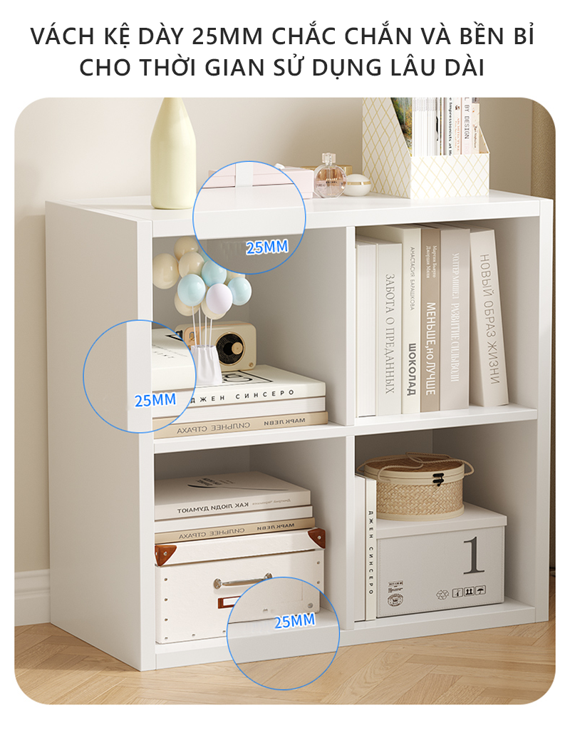️Kích thước: 3 ngăn: Cao x Rộng x Sâu = 80 x 60 x 24 cm 4 ngăn: Cao x Rộng x Sâu = 112 x 60 x 24 cm 5 ngăn: Cao x Rộng x Sâu = 136 x 60 x 24 cm ️Chất liệu: Gỗ Công Nghiệp (Gỗ MDF) nhập khẩu cao cấp chống xước, chống nước ️Màu sắc: Màu Trắng ️Bài trí: lắp đặt tùy vị trí mong muốn: cạnh bàn làm việc, bàn học, để đồ dùng, sách vở, tài liệu, đồ decor,