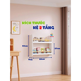 ✨Kệ Sách Treo Tường Màu Trắng Không Cần Khoan, Kệ Sách Đứng, Giá Sách Gỗ Montessori Decor Phòng Cho Bé