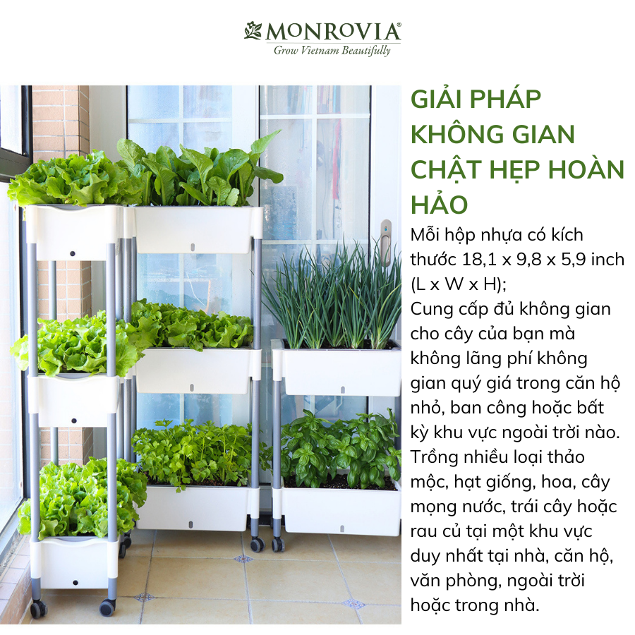 ✨Kệ trồng rau tự tưới D202 MONROVIA cho rau, hoa, có bánh xe di chuyển thuận lợi
