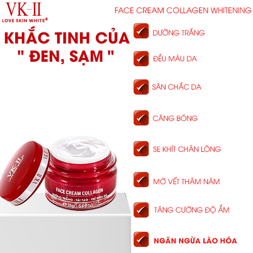 ✨Kem dưỡng trắng, tái tạo và trẻ hóa da VK-II Love Skin White Face Cream Collagen 10g
