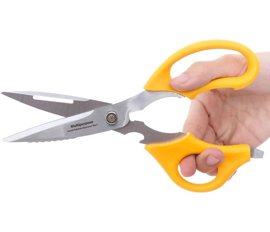 • Đa năng: kéo, dao nhỏ, kẹp thức ăn, cắt cáp, cắt dây, tẩy vảy cá. mở chai, khui hộp, bóc, tuốc nơ vít