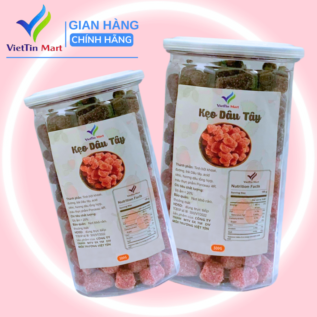 Thành Phần: Bột Khoai, Đường, Hương Dâu Tổng Hợp (Ponceau 4R), Màu Thực Phẩm, Acid Citric