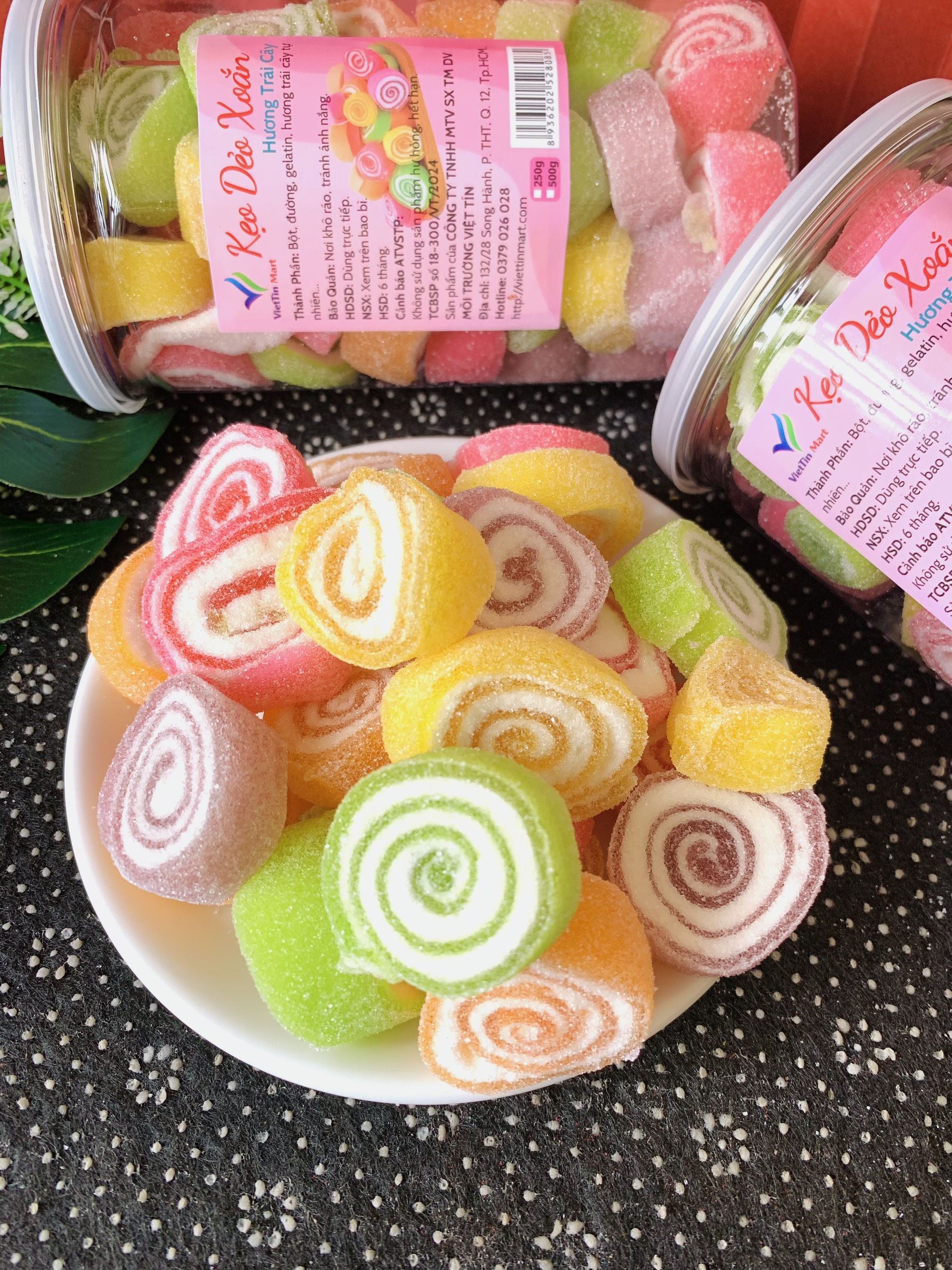THÔNG TIN SẢN PHẨM   Tên sản phẩm: Kẹo Dẻo Xoắn Hương Trái Cây VietTin Mart Thành Phần: bột, gelatin, đường, hương trái cây từ nhiê Thương hiệu: VIETTIN MART Khối lượng: 250g/500g Quy cách
