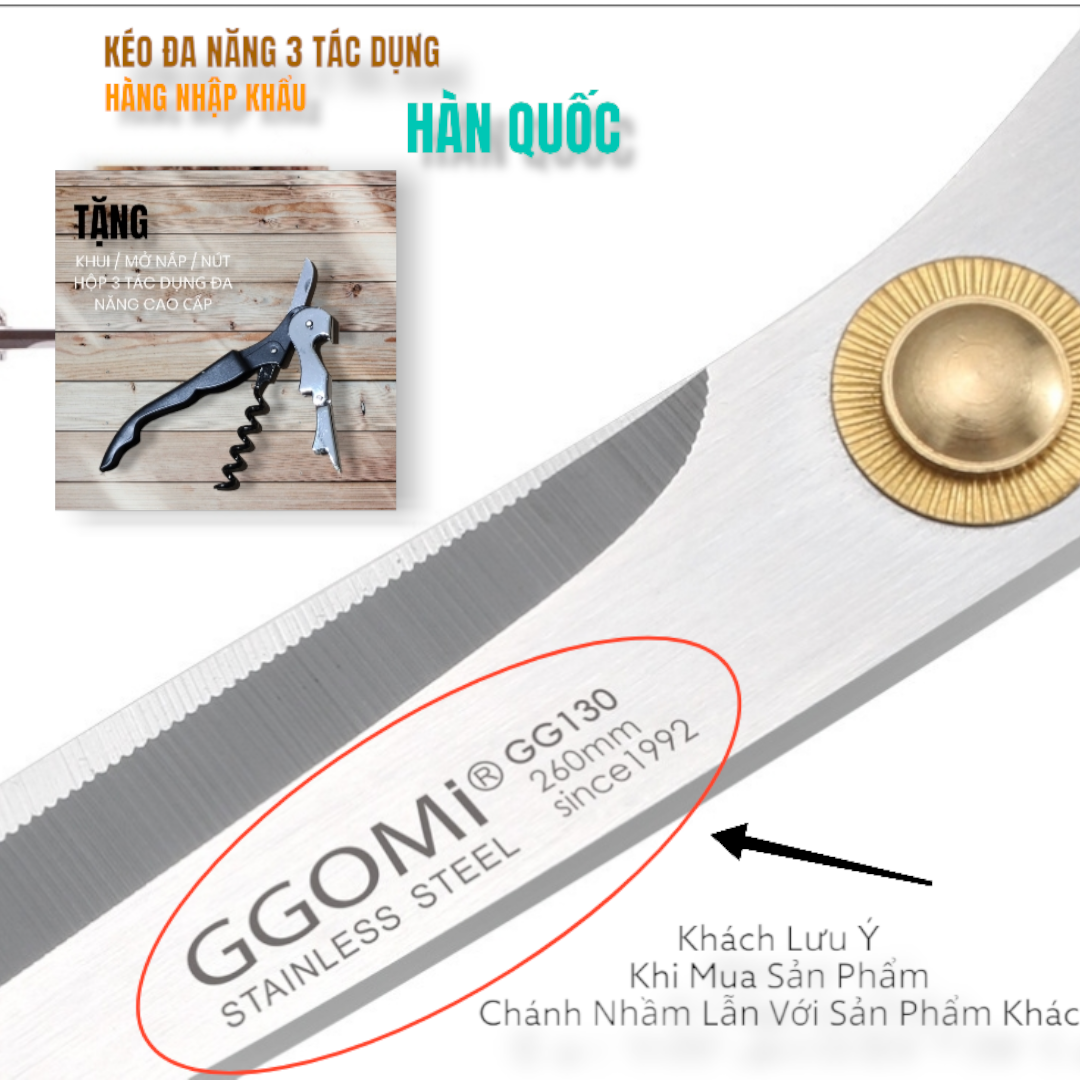 ✨Kéo Hàn Quốc Nhà Bếp Kéo Cắt Gà Cắt Đồ Đa Năng Cao Cấp ( Tặng Khui Hộp 3 in 1 )