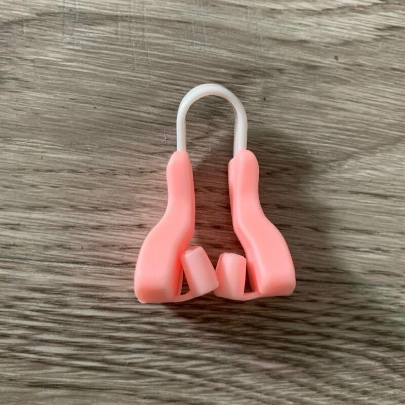 - Đưa kẹp mũi theo chiều từ trên xuống dưới sao cho phần sắt ở cuối chữ U sát với sống mũi, phần nhựa silicon áp chặt nâng sóng mũi lên