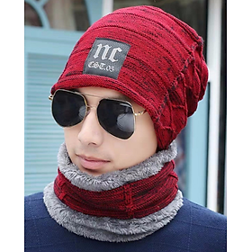 PVN55244 Mũ len cho nam kèm khăn choàng cổ mùa đông giữ ấm tốt
