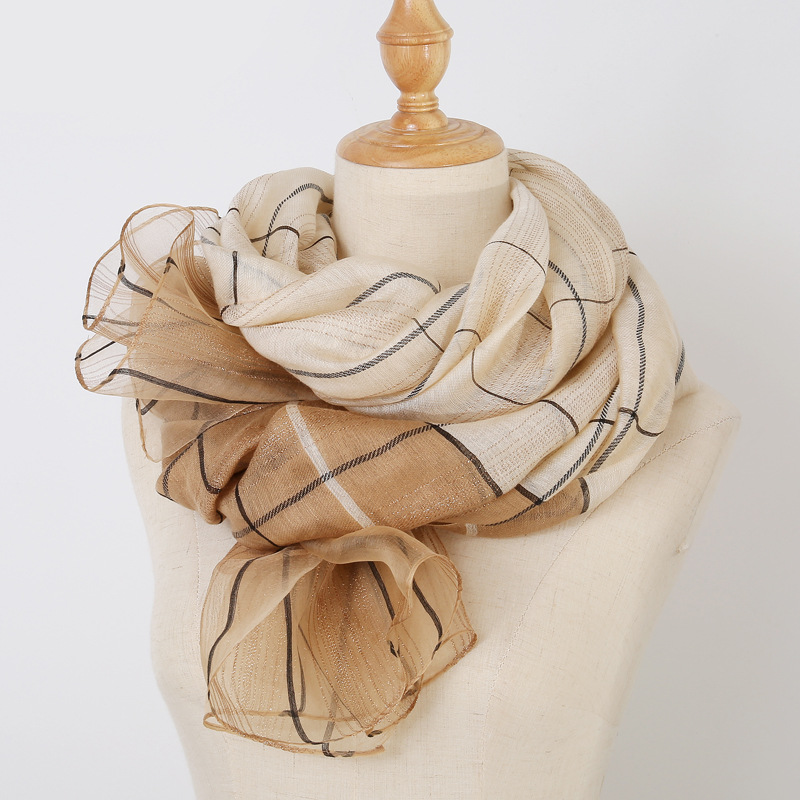 ✨Khăn Choàng Quàng Cổ Voan Lụa Kim Tuyến Cao Cấp Sọc Caro (Nhiều Màu)
