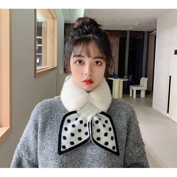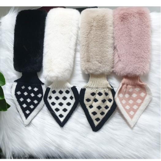 Khăn quàng cổ lông thỏ phối len thắt nơ ấm áp phong cách thời trang Dành Cho Nữ hot nhất 2020