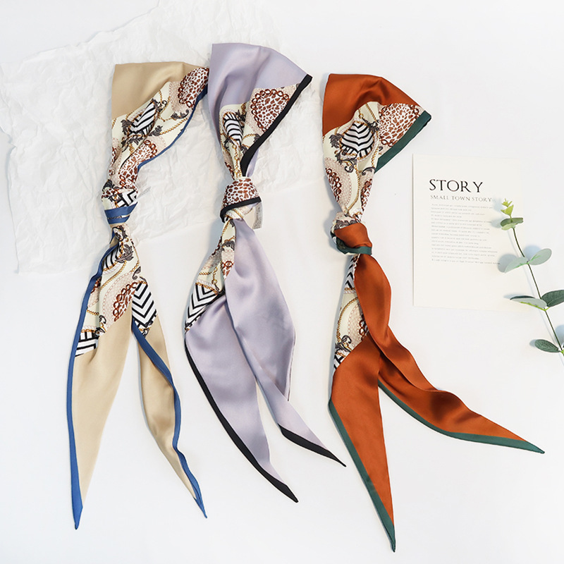 (KT-145x15cm)Khăn Lụa Quàng Cổ Dáng Dài Jussy Official Khăn Trang Trí Túi Xách In Họa Tiết 1
