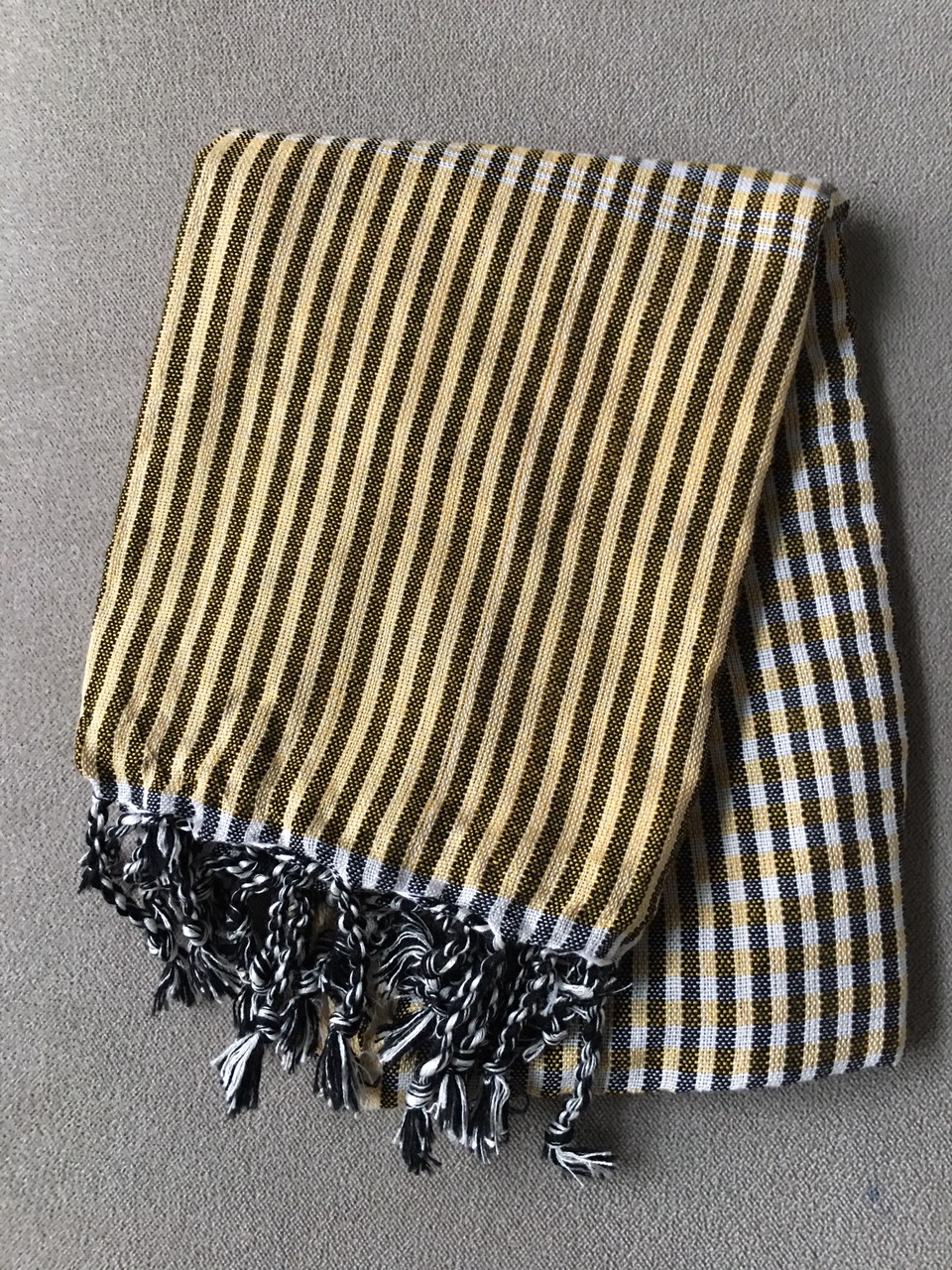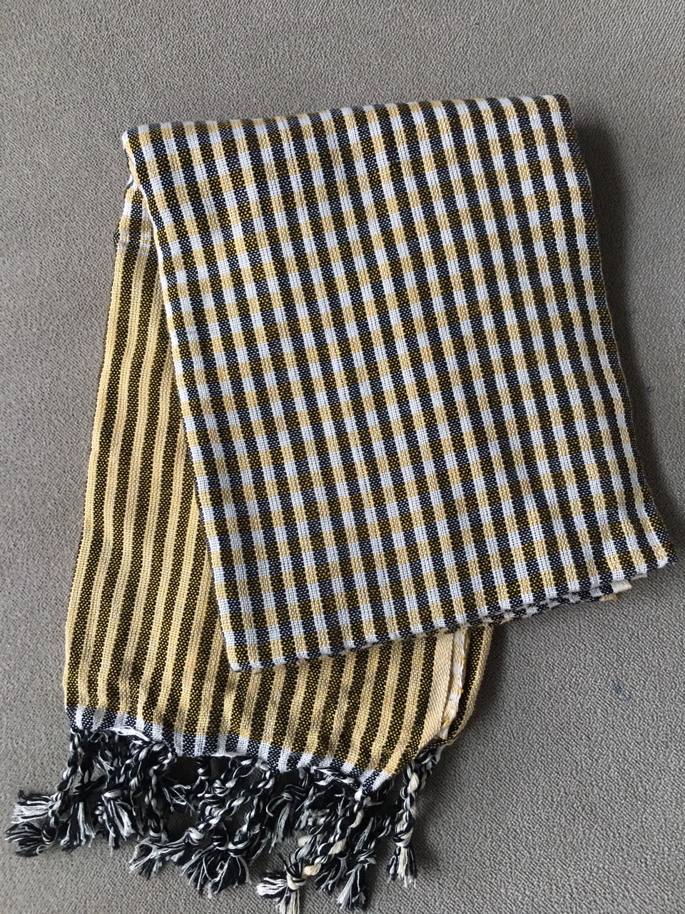 - Khăn Rằn Tốt (160 x 40 cm) - Đen được dệt chất liệu 100% cotton, hút ẩm tốt, sợi chỉ mềm mại, dày dặn, thường dùng để chống nắng và quàng giữ ấm những
