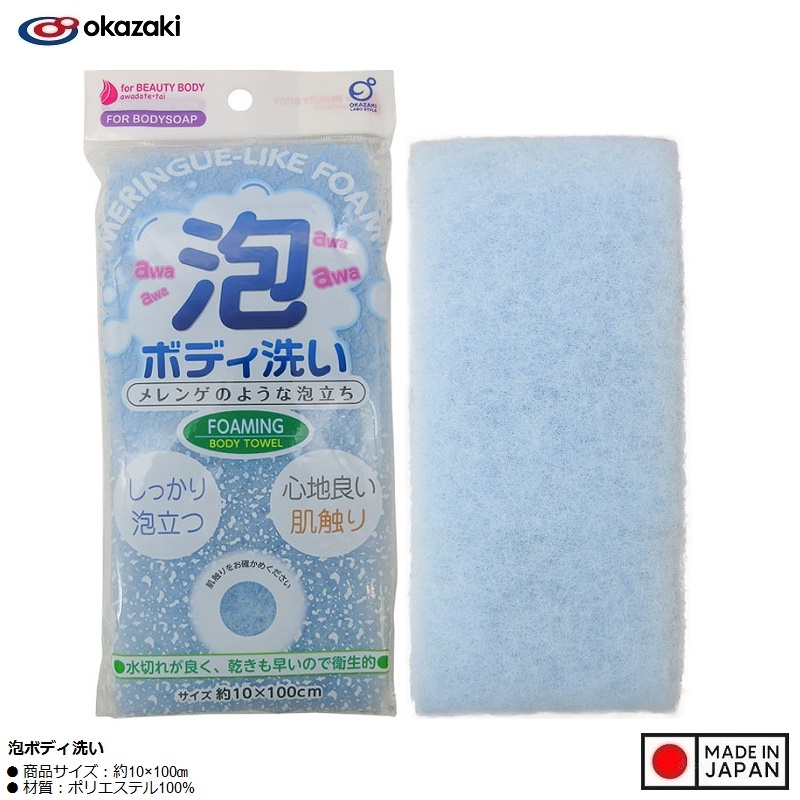 Khăn tắm tạo bọt mịn Okazaki 10×100㎝ THÔNG TIN SẢN PHẨM Xuất xứ: Nhật Bản - Màu sắc: Màu hồng | Màu xanh(Giao ngẫu nhiên) - Kích thước: 10×100㎝ - Chất liệu:100% Polyester cao cấp