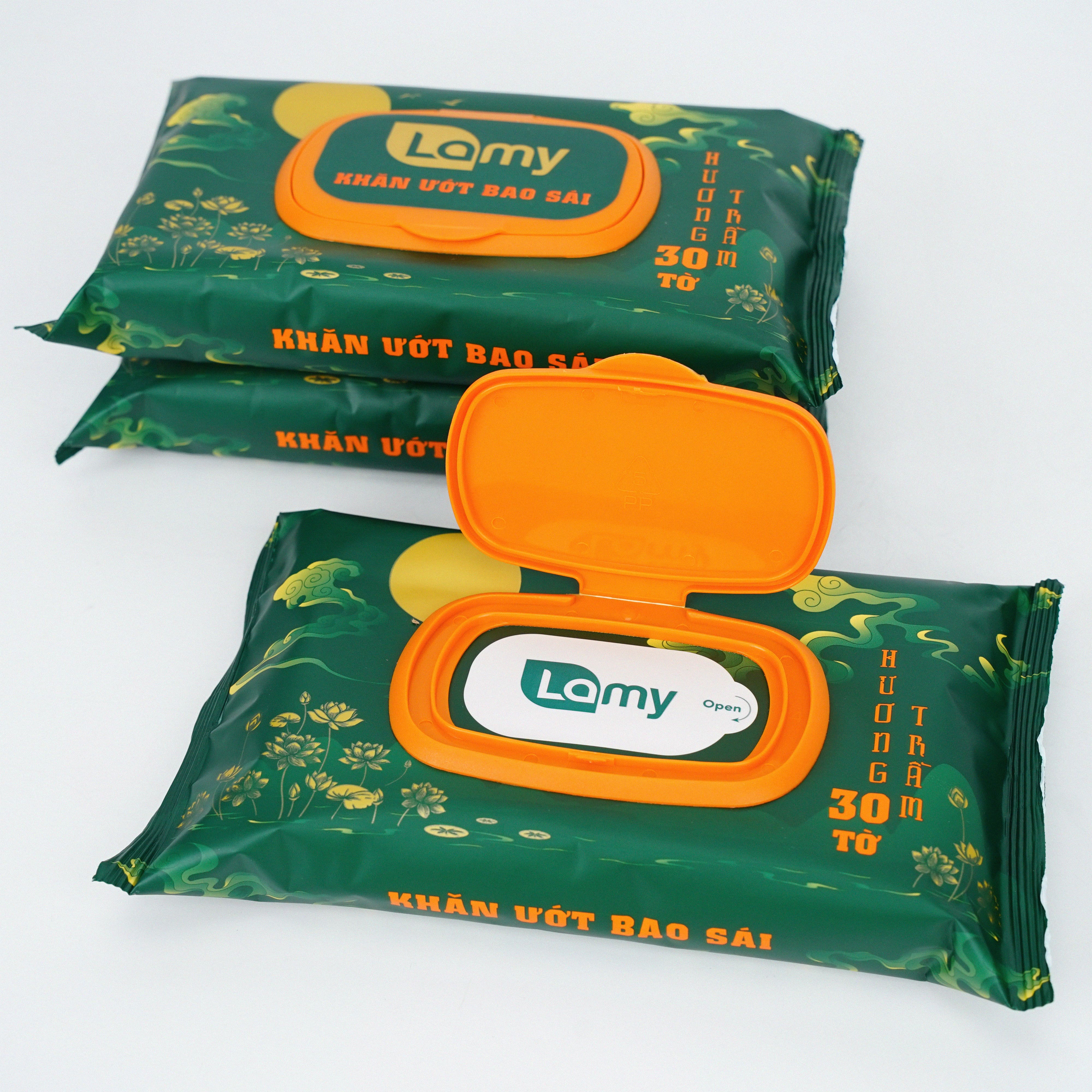 ✨Khăn ướt bao sái lau bàn thờ Lamy 30 khăn/gói Hương Trầm cao cấp