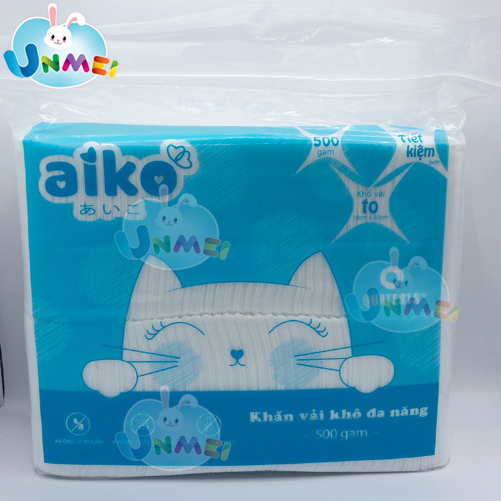KHĂN VẢI KHÔ ĐA NĂNG AIKO Các mẹ có thể dùng khăn khô kết hợp với nước ấm để vệ sinh cho bé, ngoài ra có thể dùng để tẩy trang hoặc lau chùi đồ