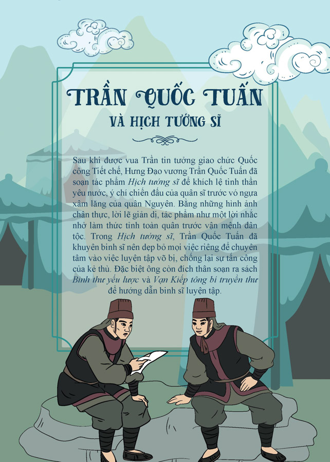 Bộ sách “Truyện tranh lịch sử Việt Nam – Khát vọng non sông” gồm hàng trăm tập, giới thiệu ngắn gọn, sinh động những truyền thuyết đầy tính nhân văn và những sự kiện, những nhân vật nổi tiếng trong lịch sử hàng nghìn năm của dân tộc Việt Nam. Trần Quốc Tuấn và Hịch tướng sỹ là sự khích lệ tinh thần yêu nước, ý chí chiến đấu của quân sĩ trước vó ngựa xâm lăng của giặc Nguyên. Hịch tướng sĩ của ông lấy được lòng tin của binh sĩ và toàn dân bằng cốt cách và tài năng, thu phục nhân tâm bằng tấm lòng một lòng trung nghĩa vì dân vì nước, là ngọn đuốc đánh thức tinh thần yêu nước của toàn quân dân Đại Việt.
