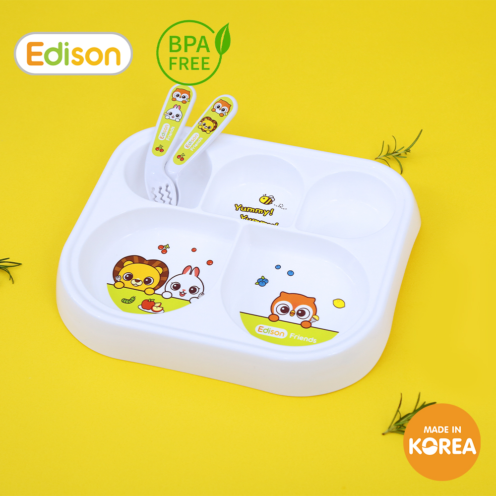 Khay ăn dặm chia ngăn Thương hiệu EDISON Hàn Quốc có đế chống trơn trượt cho bé là trợ thủ đắc lực trong những bữa ăn của trẻ ĐẶC ĐIỂM NỔI BẬT Khay ăn dặm