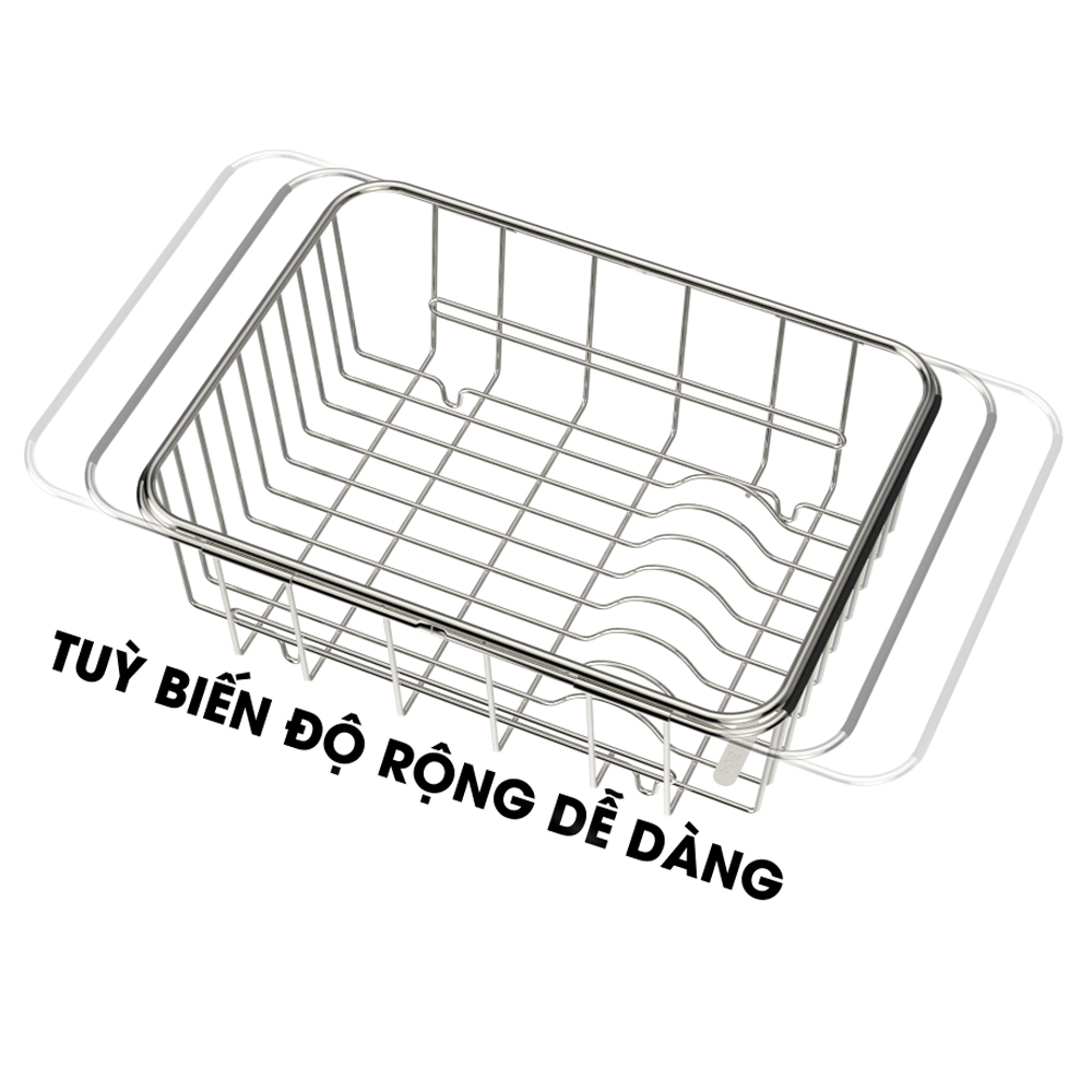 Kệ gác bồn rửa chán có thiết kế đặc biệt, thông minh và tiện dụng, có thể thay đổi kích thước chiều dài nên phù hợp với hầu hết các loại bồn rửa: Kích thước