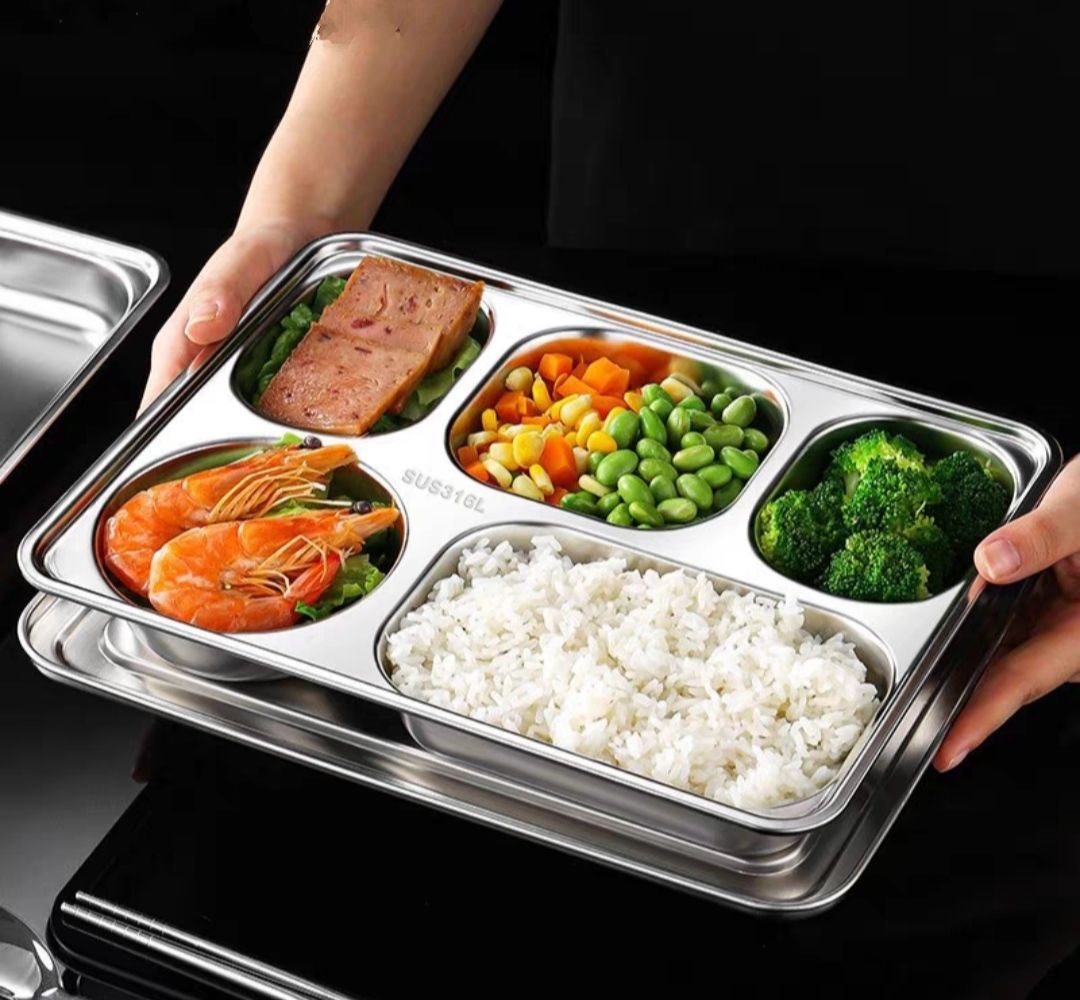 Khay ăn cơm 5 ngăn inox 304