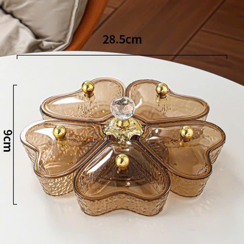 ✨Khay đựng mứt bánh kẹo xoay 5 ngăn hình trái tim, khay đựng trái cây sang trọng