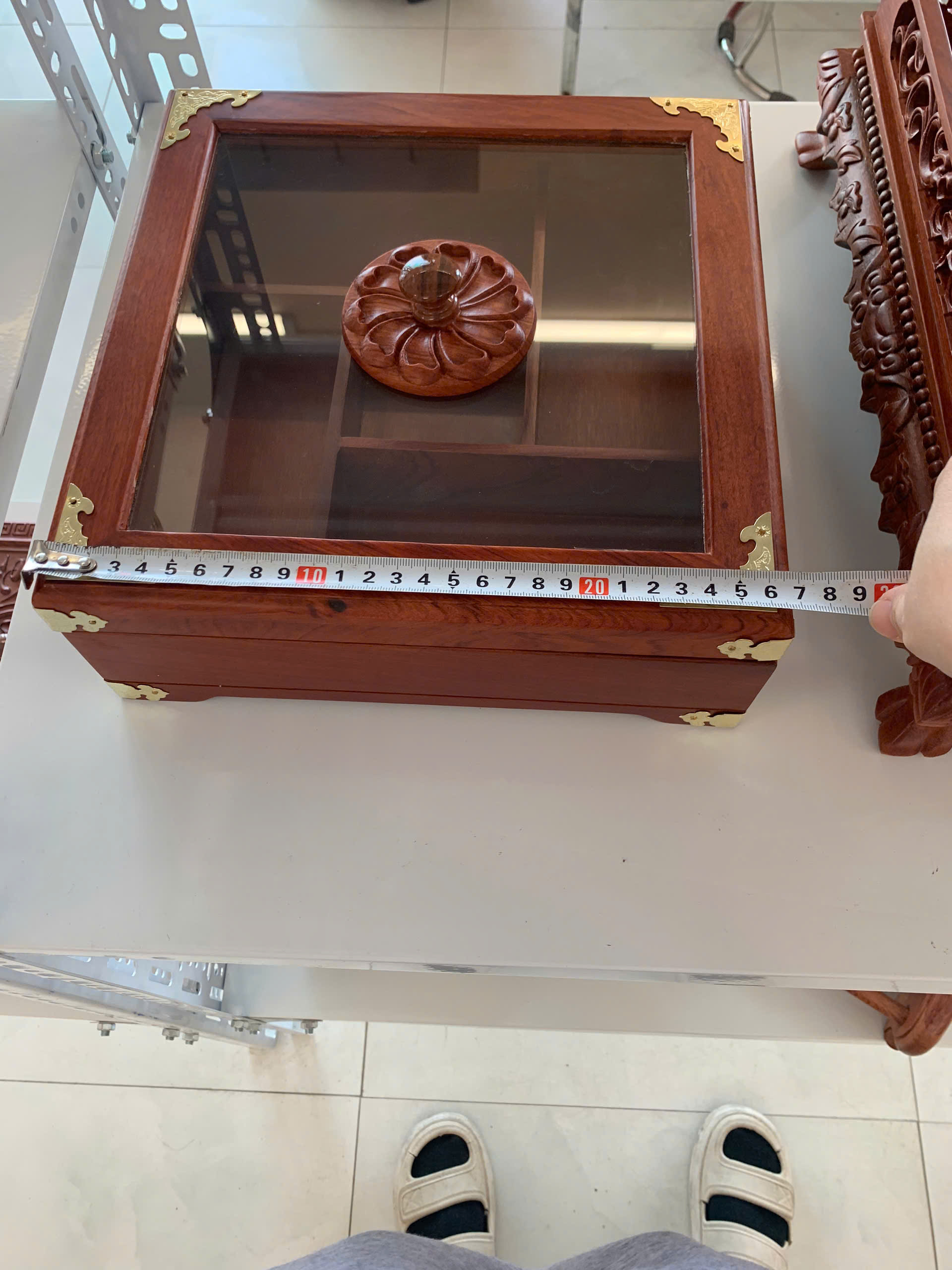 Hộp đựng mứt Tết bánh kẹo gỗ Hương chạm khắc Phúc Lộc Thọ [CTL794] BẾP MỘC LINH ĐAN_LH: 0915635588
