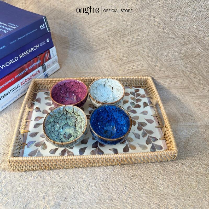 Khay mây khảm trai ONGTRE cao cấp đựng đồ đa năng - OTK6 - Sản phẩm được làm hoàn toàn thủ công bởi những người thợ có tay nghề cao nên chất lượng sản phẩm
