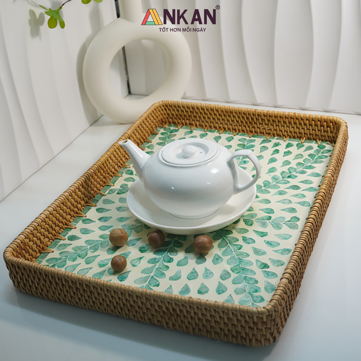 Khay Mây Khảm Trai Thủ Công ANKAN – Decor Trang Trí Nhà Cửa, Đựng Bánh Kẹo, Trái Cây