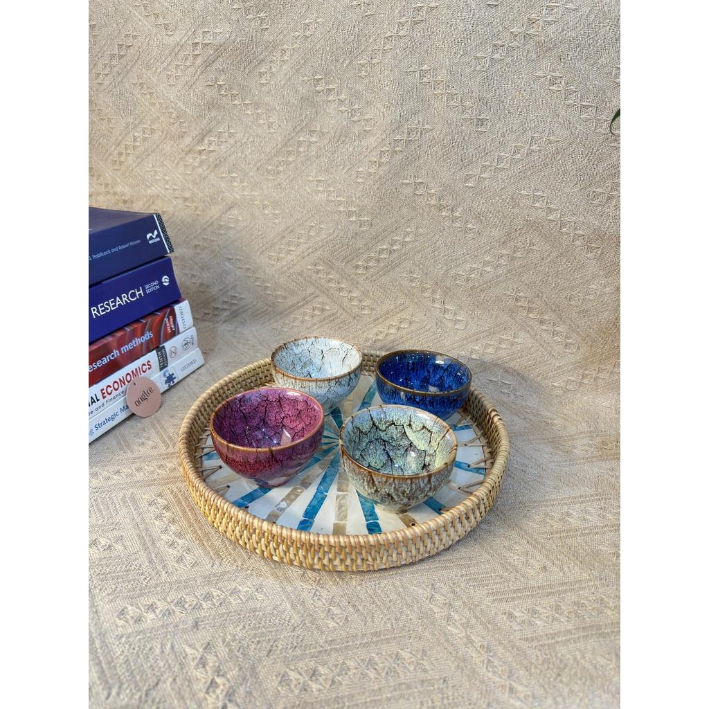 Khay mây tròn khảm trai có tay cầm ONGTRE đựng đồ, trang trí tiệc, decor chụp ảnh sản phẩm - Sản phẩm được làm hoàn toàn thủ công bởi những người thợ có tay nghề