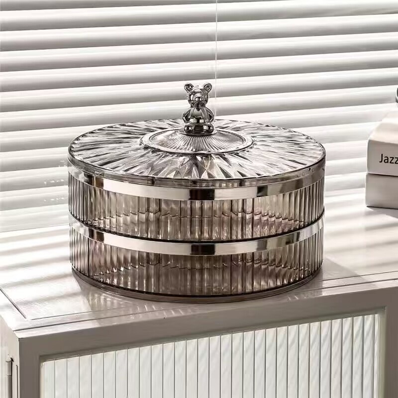 Khay Mứt Tết Pha Lê Trong Suốt, Xoay 360 Độ Cao Cấp Phong Cách Châu Âu Trang Trí Ngày Tết - Hộp Đựng Bánh Kẹo - Hàng Loại 1 - Chính Hãng MINIIN Thủy tinh