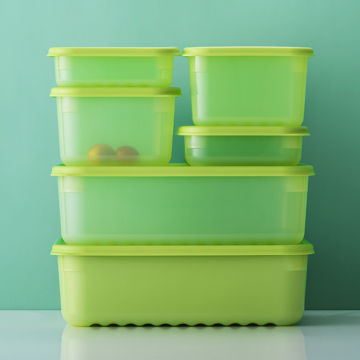 - ĐÁY THIẾT KẾ LƯỢN SÓNG: Thúc đẩy sự lưu thông không khí thông qua các hình lượn sóng ở đáy hộp. Đặc điểm: An toàn với vật liệu không chứa BPA Có thể sử dụng trong máy rửa chén, lò vi sóng, ngăn đông thân dày giúp sản phẩm có độ bền cao và không dễ vỡ. Nắp được làm từ nhựa PP dẻo, dễ mở và có khả năng bịt kín tuyệt vời. Sắp xếp gọn gàng tủ lạnh của bạn khi có thể xếp chồng các hộp lên với nhau. Khi không sử dụng, sản phẩm có thể xếp lồng vào nhau để tiết kiệm không gian sử dụng. HƯỚNG DẪN SỬ DỤNG VÀ BẢO QUẢN: