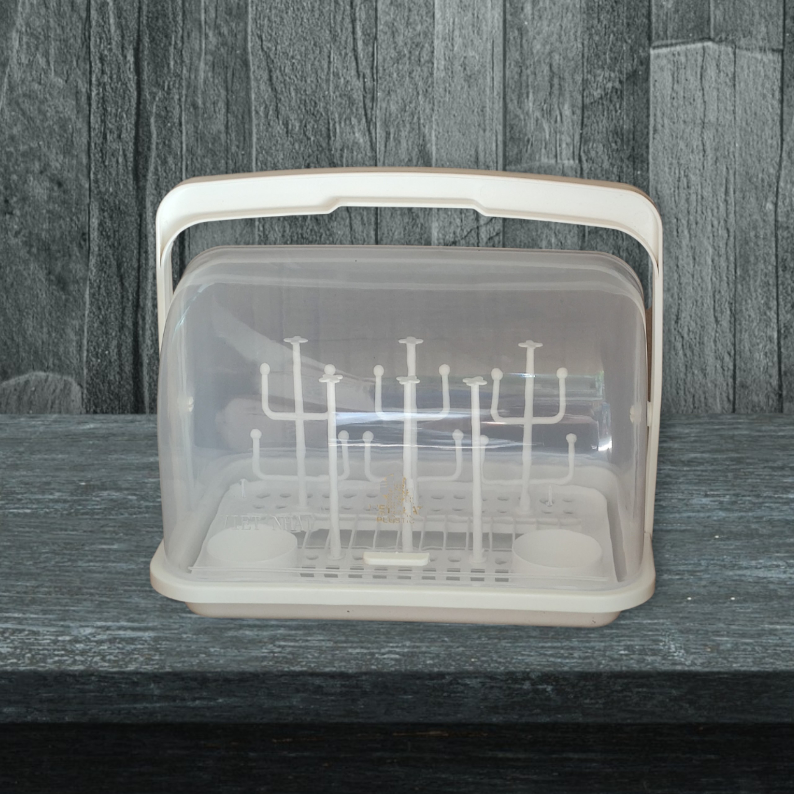 Thiết kế nhỏ gọn, tiện lợi giúp bảo quản bình sữa, ly cốc sạch sẽ, vệ sinh. Kệ có nhiều cộc để cắm bình sữa, ly cốc, giúp bình ly nhanh khô ráo