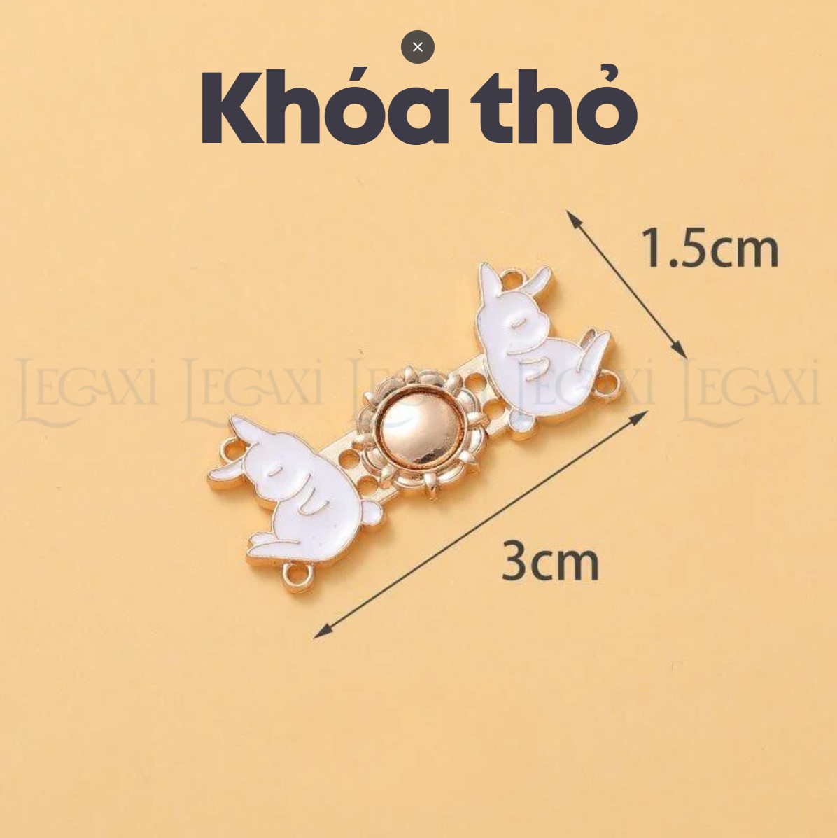 THÔNG TIN SẢN PHẨM Chất liệu: kim loại Kích thước: - Khóa vuông: 3.5cm x 1.5cm - Khóa hoa: 5cm x 2cm - Khóa thỏ: 3cm x 1.5cm Khóa dùng để Trang trí quần áo,