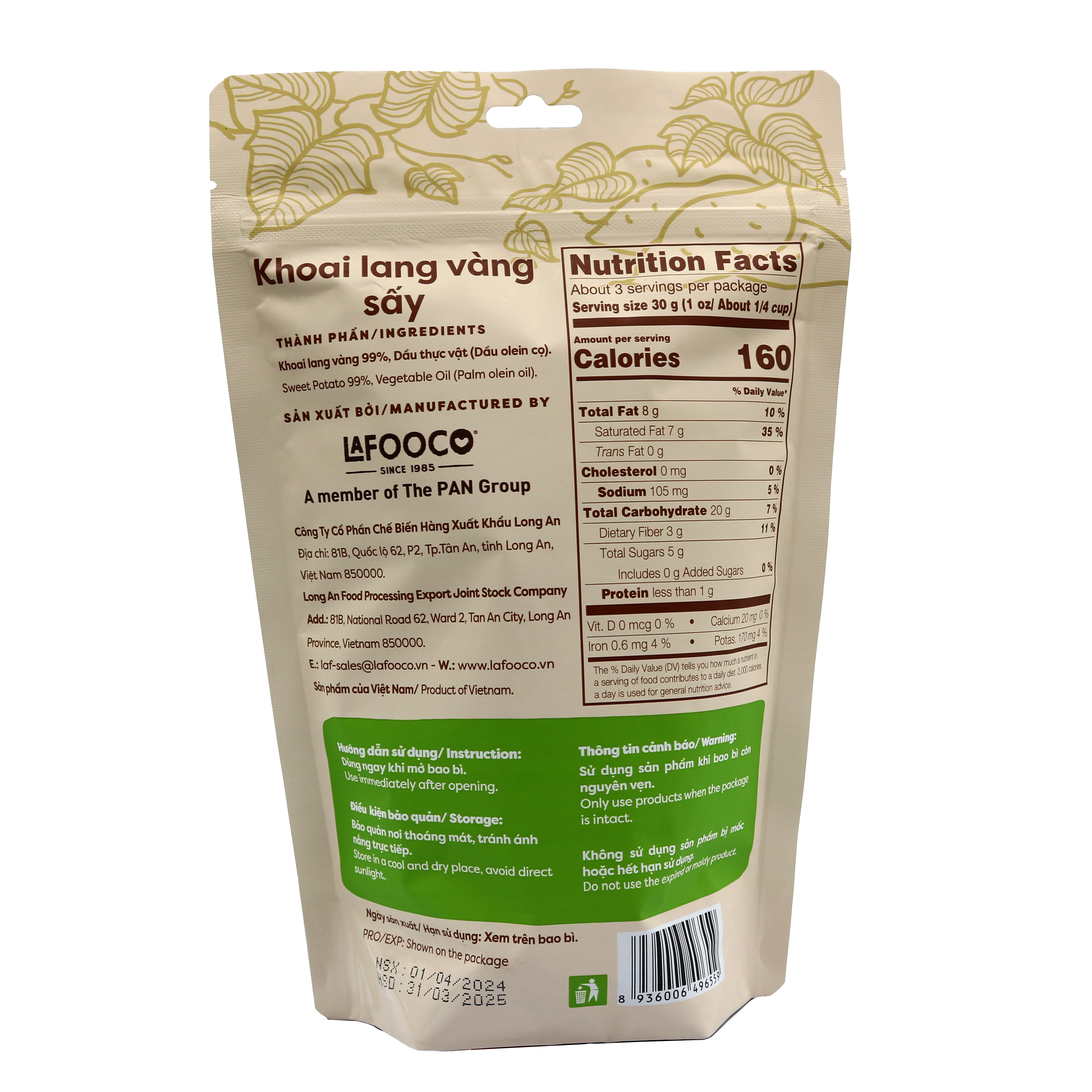 [LAFOOCO] KHOAI LANG VÀNG SẤY GIÒN 100g XUẤT KHẨU Hương vị tự nhiên, ngọt thanh của rau củ. - Thành phần: 99% Khoai lang vàng, Dầu thực vật - Khoai lang vàng giúp bổ sung