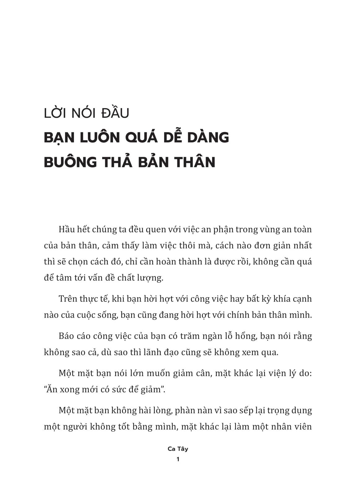 Không ai huênh hoang vài câu là có thể thành công ngay được. Cuộc sống vốn có những thử thách bất ngờ, nếu mệt thì nghỉ, sai thì làm lại, tuyệt đối đừng bỏ cuộc vì sự hài lòng dễ dãi. Buông bỏ chính m.ình trong lời oán than thì dễ, nhưng để cuộc đời buông tha m.ình mới khó.