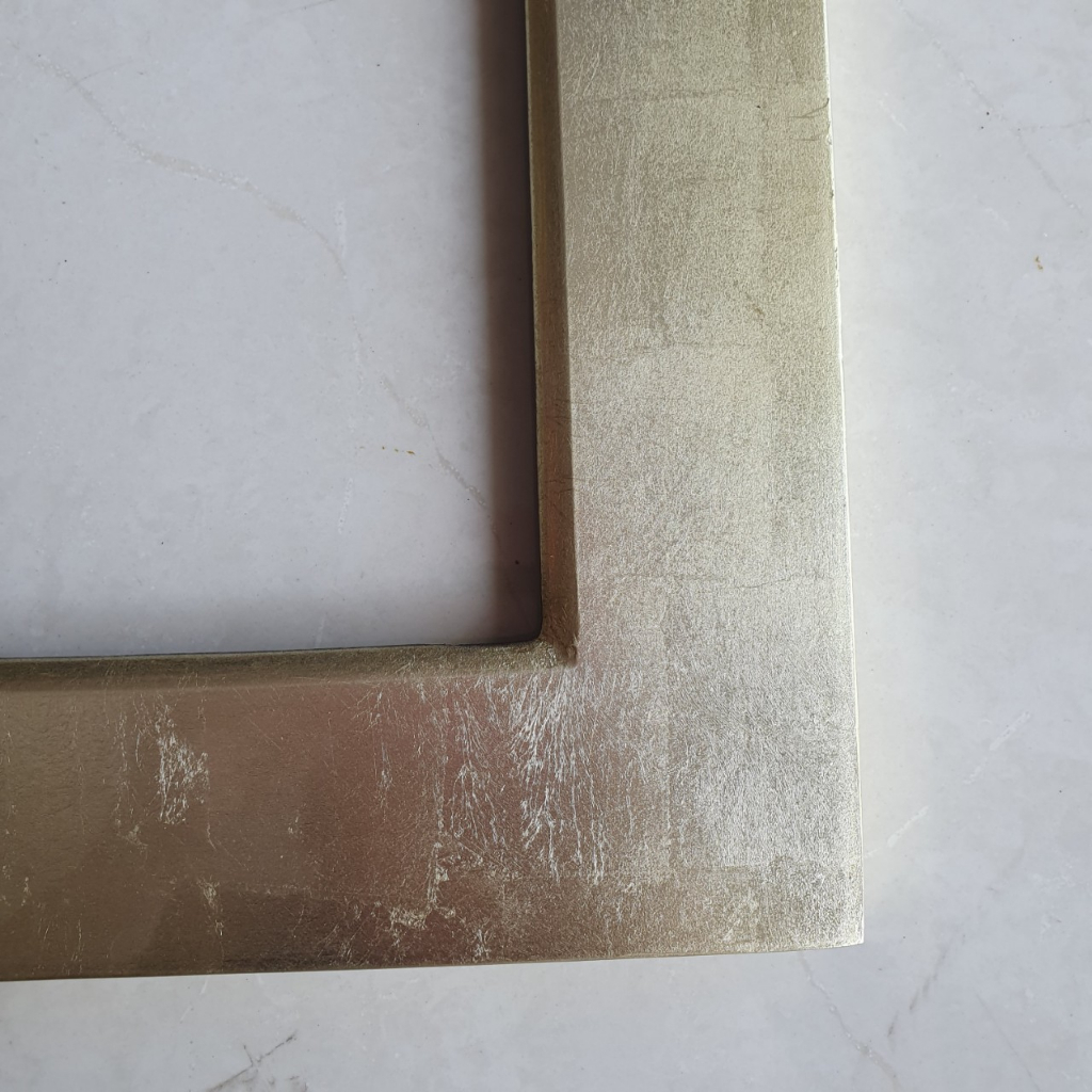 Khung gỗ sơn mài dát bạc vàng bóng đẹp, bền màu.