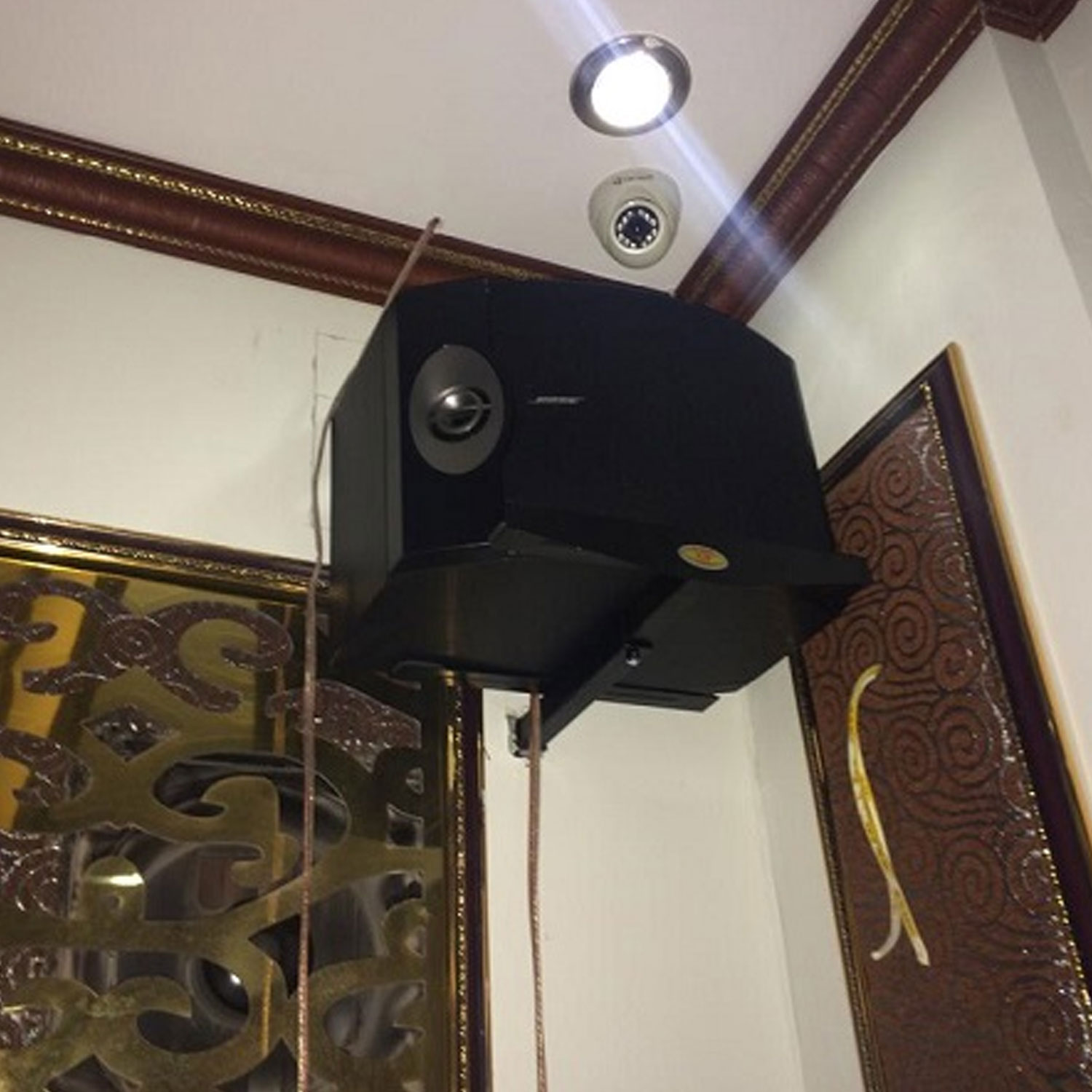 - Cách lắp đặt đơn giản, cho phép lắp với tường gạch (tường cứng) có độ dày 10cm trở lên. HƯỚNG DẪN LẮP RÁP Bước 1: Treo loa vào vị trí đã đánh dấu, cách mặt đất tối thiểu 2.5m và linh động từ sàn nhà đến trần nhà có thể lên tối đa 2,8m. Bước 2: Khoảng cách giữa 2 loa cách nhau tối thiểu từ 2,5m trở đi tùy phụ thuộc vào lòng nhà mà đặt vị trí tối đa có thể. Trường hợp với diện tích lớn 30m2 trở lên có thể phải lắp đến 2 cặp loa. Bước 3: Trong khi treo, điều chỉnh 2 loa hơi hướng xuống phía dưới sàn, điều này giúp âm thanh phủ rộng toàn bộ căn phòng và đảm bảo được truyền âm tốt nhất. Điều tối kỵ đó chính là không được quay 2 loa vào nhau. Bước 4: Loa sub hay còn gọi là loa bass chúng ta có thể tùy ý đặt ở bất cứ đâu trong căn phòng. Tuy nhiên các chuyên gia vẫn có lời khuyên rằng khoảng cách giữa loa sub và ampli không nên quá xa để tín hiệu âm thanh truyền đi được đảm bảo nhất. Bước 5: Các thiết bị âm thanh khác bao gồm ampli, đầu karaoke, bộ thu micro không dây và vang số nên đặt trên kệ, càng thoáng càng tốt. Điều này giúp cho việc sử dụng dễ dàng hơn và khi vận hành thiết bị không được che đậy kín ampli sẽ gây ra hiện tượng tự kích do nóng rất dễ dẫn đến hư hỏng. Bước 6: Loa kết nối với amply qua những cổng kết nối phải thật chính xác, không để các cực vào nhau làm hỏng amply. Tiếp theo hãy nối dây tín hiệu tại Line Out của amply vào Line In từ loa âm siêu trầm. Bước 7: Sau khi đã thử thành công cách treo loa lên tường thì chúng ta chỉ việc test và cảm nhận thôi.