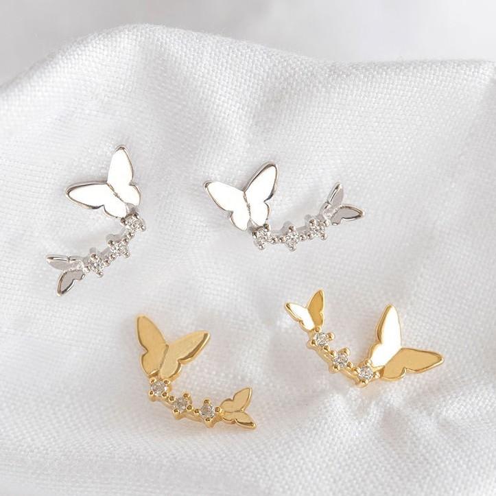 Khuyên tai bạc 925 thiết kế nối tiếp nhau trẻ trung mới lạ độc đáo lấp lánh long lanh Dế Bạc - K6012