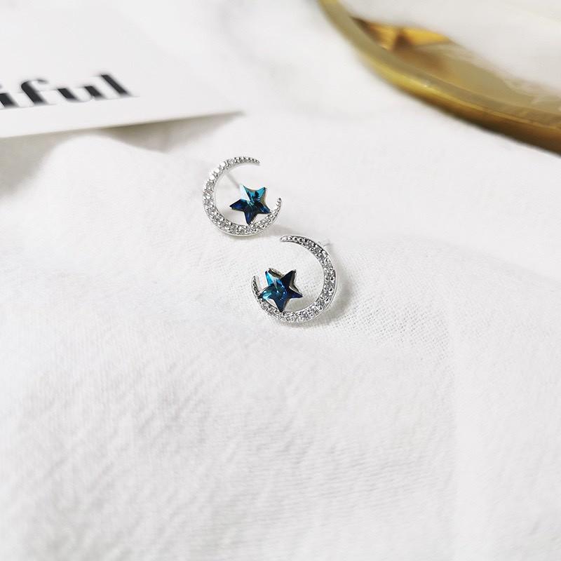 Khuyên tai bạc 925 trăng sao xanh đính đá lấp lánh long lanh nổi bật trẻ trung thanh lịch Dế Bạc - K5359