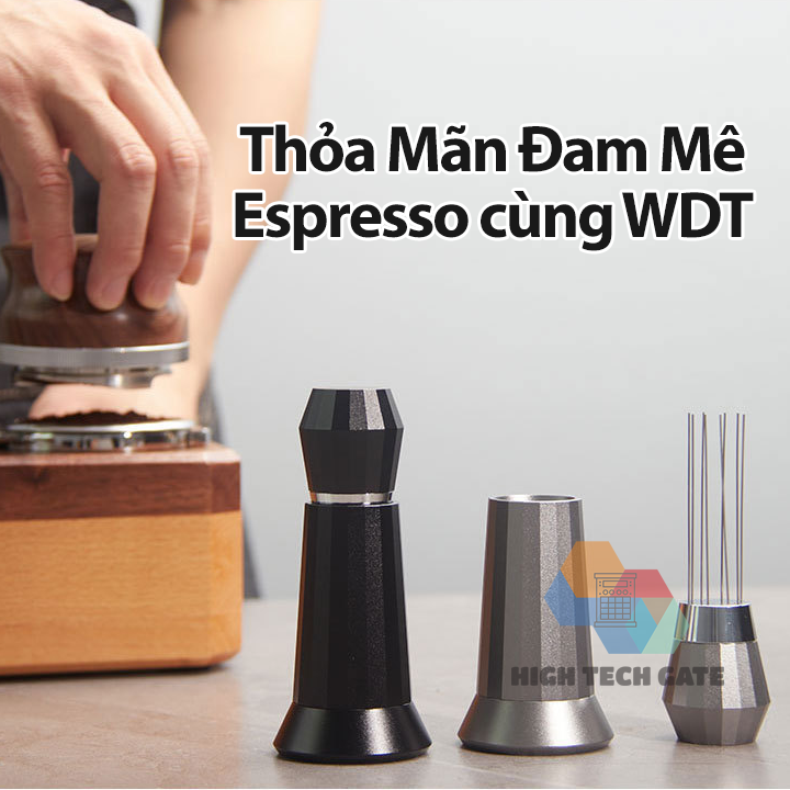 Kim đánh tơi bột cà phê WDT Một dụng cụ giúp ích cho việc pha chế các Espresso tuyệt vời, đạt chuẩn chất lượng nhanh chóng. Chống channeling Khi pha chế bằng máy pha cà phê Espresso, thông thường cà phê khi xay ra mịn sẽ làm vón cục, dẫn tới quá trình nén và chiết xuất họng pha sẽ không đồng đều, không đủ áp, xuất hiện hiện tượng channeling khi pha. Kim đánh tơi bột cà phê WDT sẽ rất hữu ích giúp cho việc phân bổ đồng đều cà phê bột bên trong, chống bị bón cục. Với thiết kế tám khi khuấy, là phiên bản nâng cấp của các WDT trước đây, giúp người dùng đánh tơi dễ hơn, và giảm thiểu thời gian đơn giản hơn. Sở hữu đường kính kim chỉ còn 0.4mm với chất liệu SS304 bền bỉ. Phiên bản cũ đã bị đánh bại hoàn toàn với đường kính này. Thiết kế có thể tháo rời toàn bộ các bộ phận riêng biệt. Vệ sinh Kim đánh tơi bột cà phê WDT dễ dàng mà đơn giản. Đặc biệt là phần Đế, giúp việc làm sạch bột cà phê lâu ngày quá tiện lợi