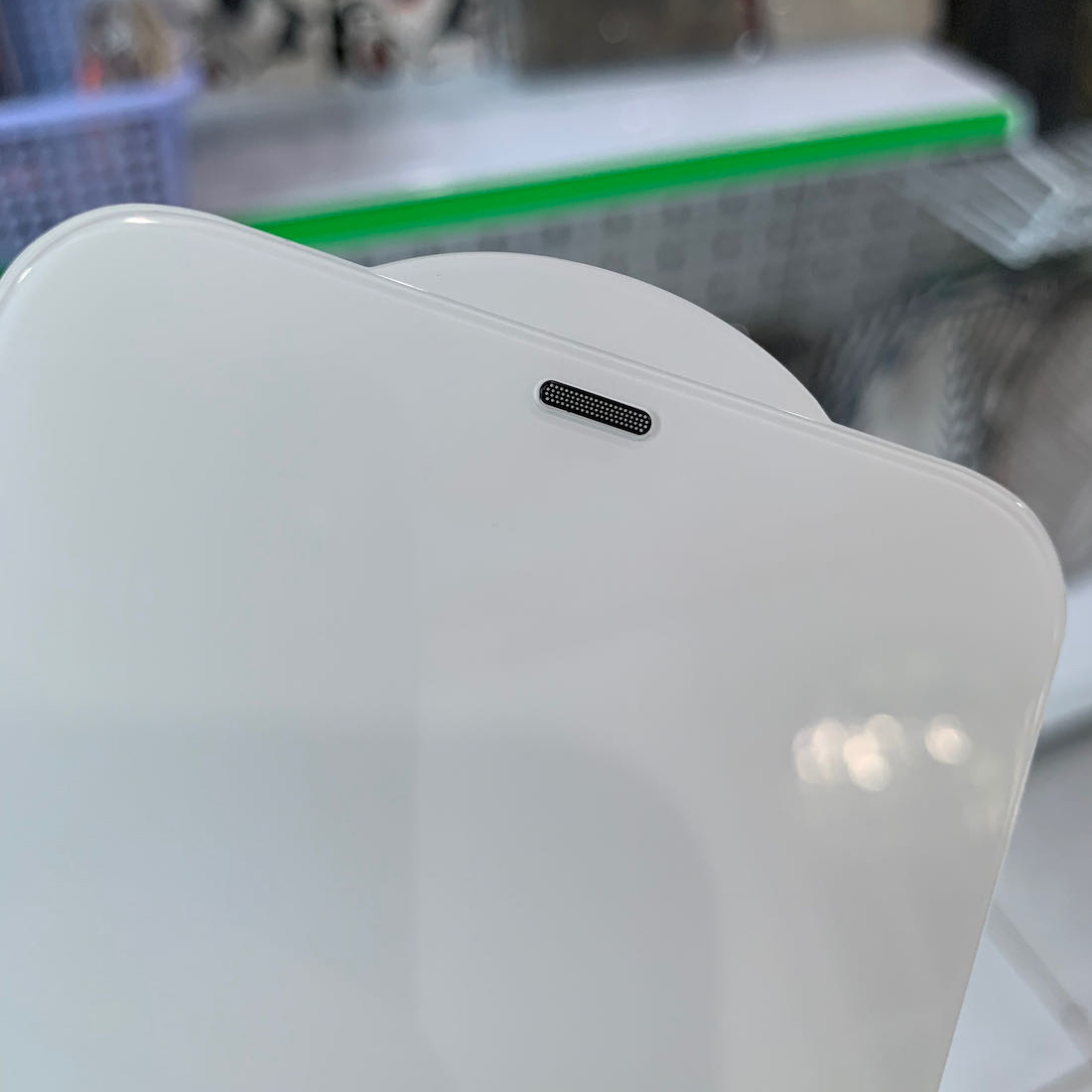 Kính cường lực không màu viền full tràn màn hình, có lưới lọc bụi lỗ loa, kính dán trong suốt toàn bộ cho iPhone - Hàng chính hãng Kính dán màn hình thông thường thì lỗ loa của iPhone là chỗ không được bảo vệ dễ gây rè, hay dễ bị nước ngấm vào bên trong gây hỏng máy. Nhưng với sản phẩm Kính cường lực không màu viền full tràn màn hình, có lưới lọc bụi lỗ loa, kính dán trong suốt toàn bộ cho iPhone sẽ giải quyết vấn đề đó cho bạn. Kính dán có thiết kế với màng chắn bụi độc đáo. Màng loa được bao phủ bởi 1 lưới mịn có tác dụng chống bụi bẩn tốt hơn nhưng vẫn đảm bảo chất lượng âm thanh của cuộc gọi.> Bề mặt kính mỏng nhẹ với độ dày vừa phải mang đến cho bạn cảm giác êm tay và thoải mái khi sử dụng. Mặt kính có độ sáng và độ trong suốt tự nhiên, hiển thị độ nét như nguyên gốc giúp giữ cảm ứng mượt mà. Bề mặt kính có phủ lớp nano mướt mịn, hạn chế bám vân tay và mồ hôi. Kính có độ cứng 9H, mày mép 2.5D giúp tăng độ cứng và hạn chế hở mép, tương thích vừa vặn chính xác đến từng centimet giúp bảo vệ tối đa màn hình iPhone của bạn khỏi va đập hư hỏng vỡ bể. Sản phẩm gồm 1 miếng dán mặt trước và dụng cụ lau chùi làm sạch màn hình trước khi dán.  Hướng dẫn dán: