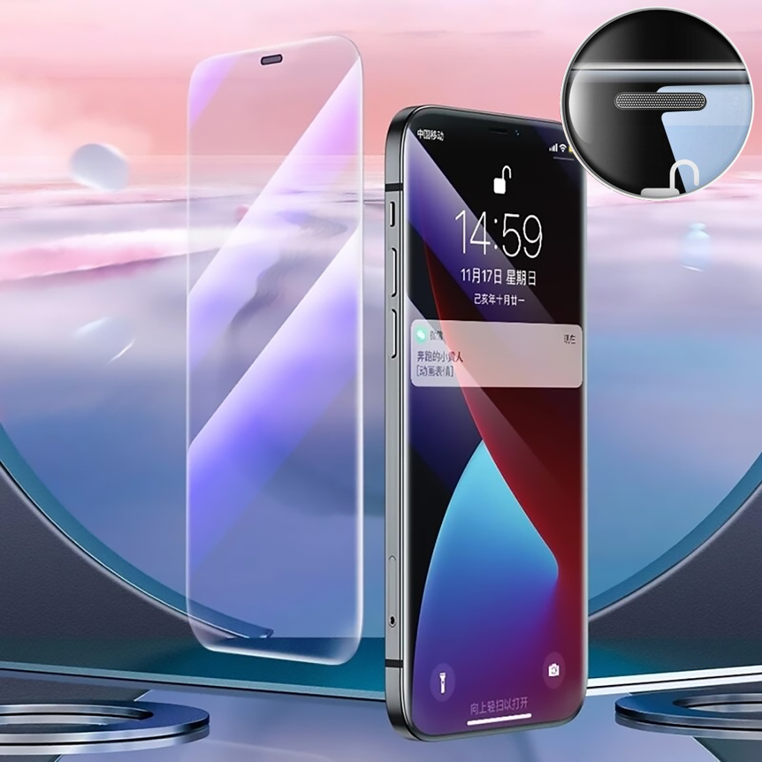 ✨Kính cường lực không màu viền full tràn màn hình, có lưới lọc bụi lỗ loa, kính dán trong suốt toàn bộ cho iPhone - Hàng chính hãng