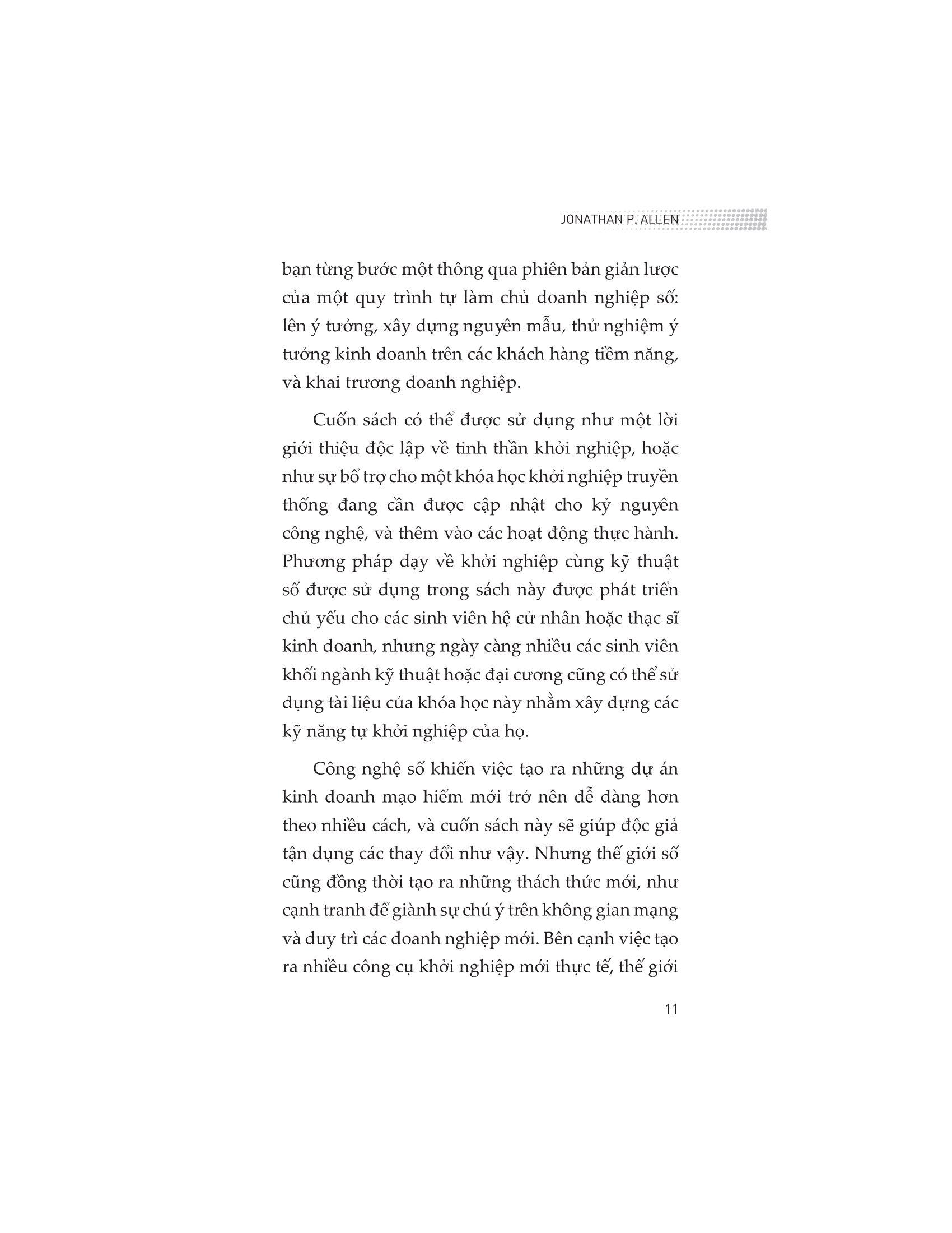 Với cách tiếp cận đã giành giải thưởng, tác giả Jonathan P. Allen hướng dẫn độc giả thông qua quá trình khởi nghiệp tinh gọn, cũng như cách tiếp cận “kỹ thuật số đầu tiên” đối với tinh thần khởi nghiệp. Kinh doanh trong thời đại VUCA còn cung cấp cho người đọc các mô hình kinh doanh kỹ thuật số khác nhau, kỹ năng phân tích các dự án kỹ thuật số và sự tự tin để chuyển từ nguyên mẫu đến sản phẩm.