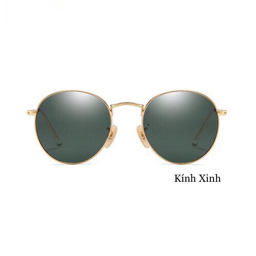 ✨Kính râm Mắt Tròn Tròng Thủy Tinh Cao Cấp Gọng Kim Loại Chống Nắng UV