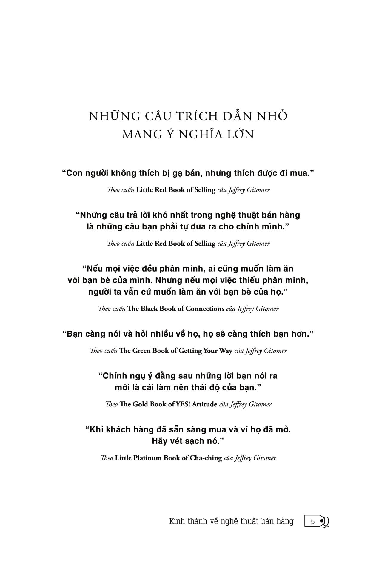 Jeffrey Gitomer được đánh giá là một trong những tác giả có ảnh hưởng lớn nhất trên thế giới về nghệ thuật bán hàng và dịch vụ khách hàng. Ông đã tổ chức hơn 150 chương trình đào tạo về bán hàng và chủ trì các cuộc gặp mặt khách hàng hằng năm cho các tập đoàn lớn như IBM, AT&T, Coca-Cola, Hilton Hotels, Inc. Manazine, Siemens, và Cintas.