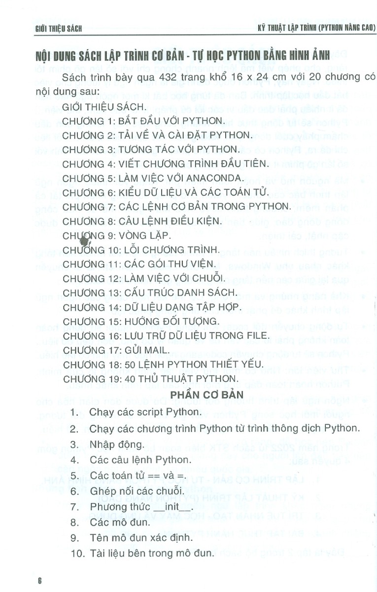 Mua tại TiktokKỹ Thuật Lập Trình Python Nâng Cao Về cuốn sách này Đến bất kỳ hiệu sách lớn nào (trực tiếp hoặc trực tuyến), bạn sẽ tìm thấy rất nhiều sách Python. Nếu đã quen với việc đọc sách bạn sẽ có một cái nhìn tổng quan nhanh chóng giúp bạn quyết định liệu cuốn sách này có thực sự phù hợp với bạn hay không. Cuốn sách này mong muốn phổ cập ngôn ngữ Python đến với nhiều bạn có mong muốn tìm hiểu lập trình máy tính. Sách được viết cho các đối tượng chính sau: Không yêu cầu người học có kinh nghiệm lập trình trước đó. Học sinh phổ thông. Sinh viên chuyên hay không chuyên ngành CNTT. Các bạn mong muốn trở thành lập trình viên Front-end, Back-end,